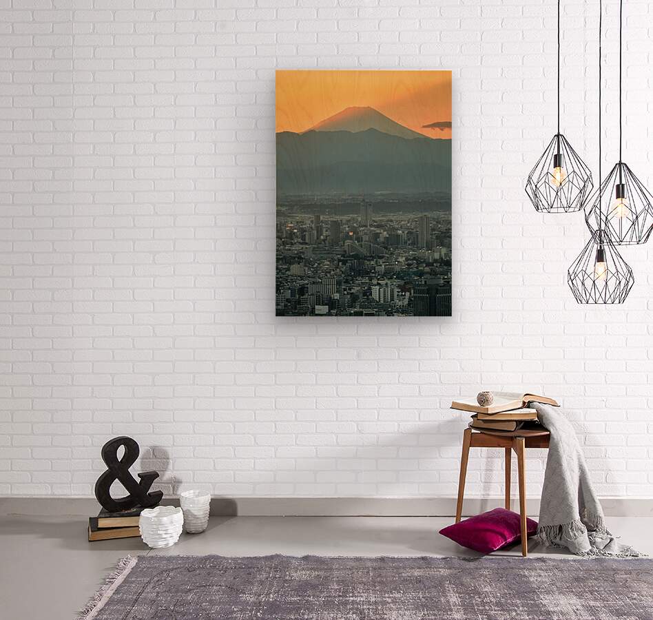 Tokyo stretches out in dense layers as evening settles its buildings fading gradually into shadow while Mount Fuji rises beyond the city in calm silhouette. The mountain catches the last warmth of the day softly lit against a fading sky creating a quiet contrast between the stillness of nature and the vast urban sprawl below. The scene feels balanced and restrained a moment where the city seems to pause beneath something far older and steadier. Mount Fuji has long held cultural and spiritual significance in Japan often viewed as a symbol of endurance and harmony. From Tokyo clear views like this are fleeting and treasured usually appearing at sunset when the atmosphere softens and the mountain briefly reveals itself. The distance between foreground and background reinforces the scale of both highlighting how closely modern life exists alongside Japan’s most iconic natural landmark. A perfect photograph for modern interiors offices or spaces that suit calm cityscapes with a strong sense of place and perspective. This image is available as wall art and across a wide range of formats to suit your space or style.
