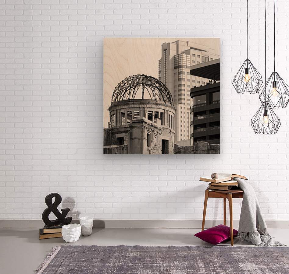 The skeletal dome rises with quiet defiance its exposed brick and twisted steel standing in stark contrast to the smooth glass and concrete that now surround it. In Hiroshima the Atomic Bomb Dome holds its ground at the heart of a modern city a visible scar that refuses to be softened by time. The two figures watching from a nearby balcony seem small against it a subtle reminder of scale and of the weight this structure still carries. Now preserved as part of the Hiroshima Peace Memorial Park the Atomic Bomb Dome is the former Hiroshima Prefectural Industrial Promotion Hall one of the few buildings left standing near the hypocentre of the 1945 atomic bombing. It has since become a UNESCO World Heritage Site and a global symbol of remembrance and peace. A perfect photograph for collectors of historically significant architecture meaningful urban landscapes and images that speak quietly but powerfully of resilience. This image is available as wall art and across a wide range of formats to suit your space or style.