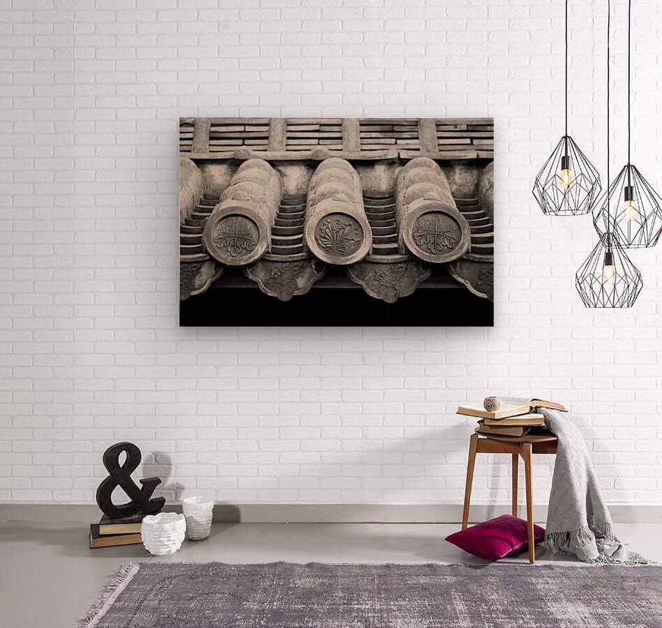 A row of ornate end tiles known as gatou lines the roof of Himeji Castle in Himeji Japan each one bearing a carved crest that speaks to its symbolic role in traditional Japanese architecture. The repetition of these circular forms creates a steady rhythm across the frame while the subtle differences in texture and wear give each tile its own presence. It’s a close look at craftsmanship that’s easy to miss at a distance but defines the character of the structure. Himeji Castle is one of Japan’s most well preserved historic castles and a UNESCO World Heritage Site. These decorative tiles were designed not only to protect the roofline but also to display family or clan crests reflecting status and identity within feudal Japan. A perfect photograph for collectors of Japanese architectural detail historic craftsmanship and refined design elements. This image is available as wall art and across a wide range of formats to suit your space or style.