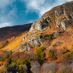 Sunlight catches the craggy face of Craigower above Pitlochry in Highland Perthshire bringing out the deep rust tones of bracken and the rich golds and oranges of autumn trees scattered across the slope. There’s a warmth to the scene that softens the ruggedness a brief seasonal moment where the hillside feels alive with colour before it fades back into winter. Craigower sits within what’s often known as “Big Tree Country” an area celebrated for its dense woodlands and strong autumn displays. The mix of native trees and open hillside creates this layered patchwork of colour set against the more exposed rock that defines the character of the landscape. A perfect photograph for those drawn to autumn landscapes rich natural colour and the changing seasons in the Scottish Highlands. This image is available as wall art and across a wide range of formats to suit your space or style.