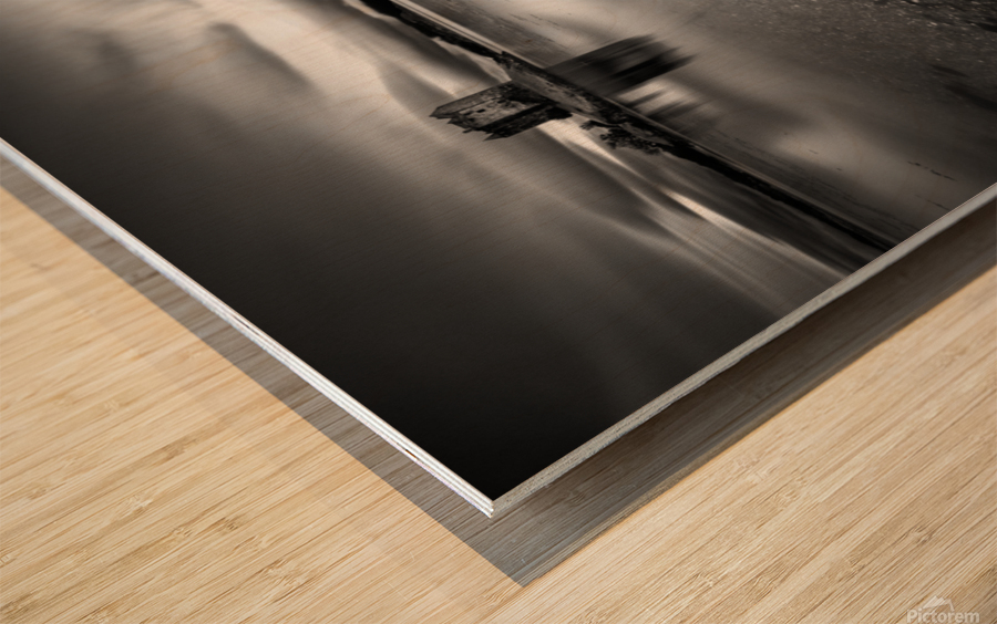 A monochrome, long exposure photograph capturing the jetty extending towards Castle Stalker in Argyll, Scotland. The stark contrast and ethereal tones...[+]