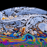 A macro photograph of light reflecting off the surface of a simple soap bubble as the surface tension begins to break down just before it pops. One in...[+]