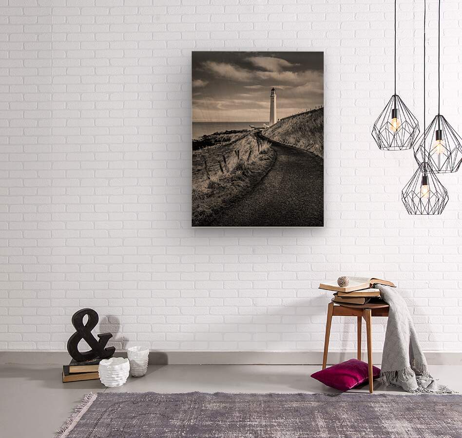 A monochrome photograph capturing the road leading to Scurdie Ness lighthouse in Montrose, Angus, Scotland. The image highlights the stark contrast and textures of the landscape, with the lighthouse standing prominently at the horizon. Ideal for photography enthusiasts, art collectors, and lovers of Scottish landscapes.